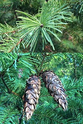 Cones are 3-4” long with a paper-thin 3-pointed bract sticking out beneath each woody scale. These bracts have been compared to a three-pronged pitchfork or to the hind feet and tail of a mouse diving into a hole.