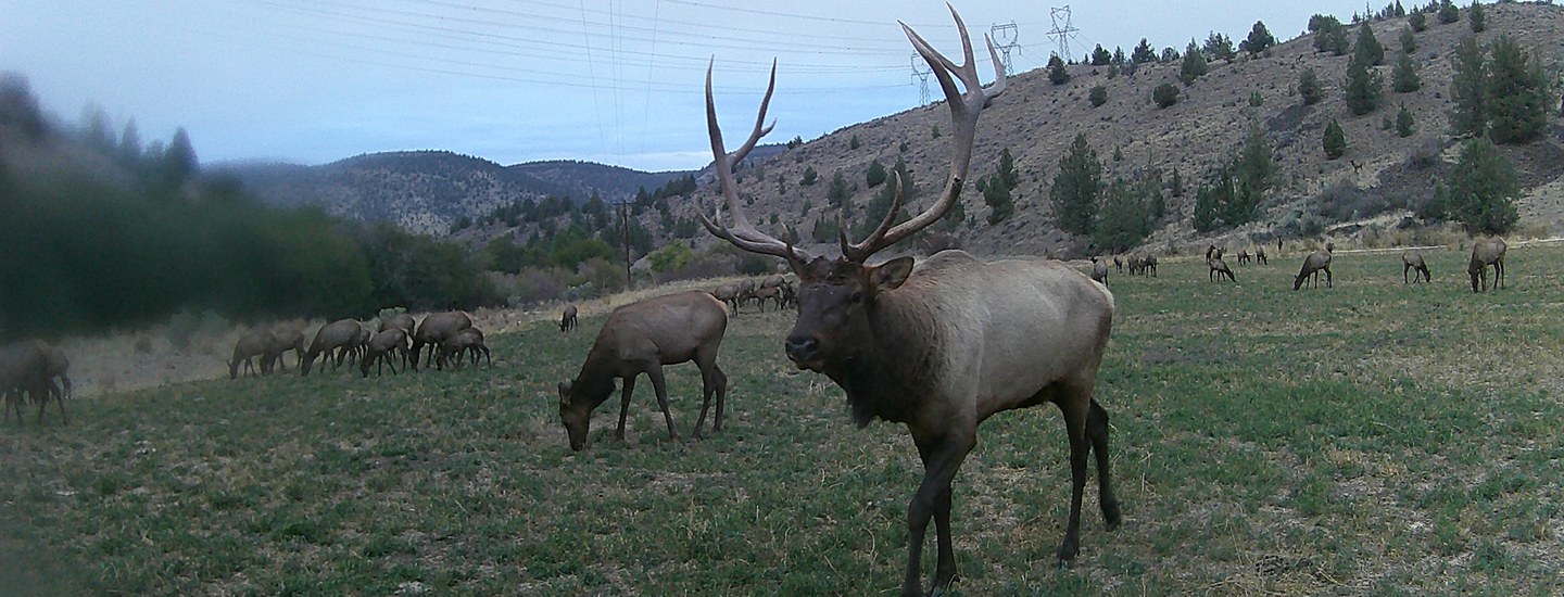 Elk (Cervus elaphus) have captivated the human spirit for as long as we’ve inhabited North America. Native American artifacts from British Columbia all the way to Maine depict our reverence for the majestic wapiti (another term for elk from the Shawnee for “white rump”). Of the twenty-two recognized subspecies worldwide, four are found in North America and two of these inhabit Oregon—Roosevelt elk and Rocky Mountain elk. Roosevelt elk have the larger body of the two (males are 700-1,100 pounds) and are found in most of western Oregon. Rocky Mountain elk are smaller in body, but have the largest antlers of all elk, weighing up to 40 pounds! They are found in most of eastern Oregon. Informally, the border between the two subspecies in Oregon is considered to be US-97 but the two intermingle in the east Cascades and cross-breeding occurs with some hybrid elk called, Cascade elk.