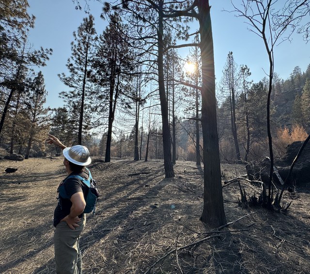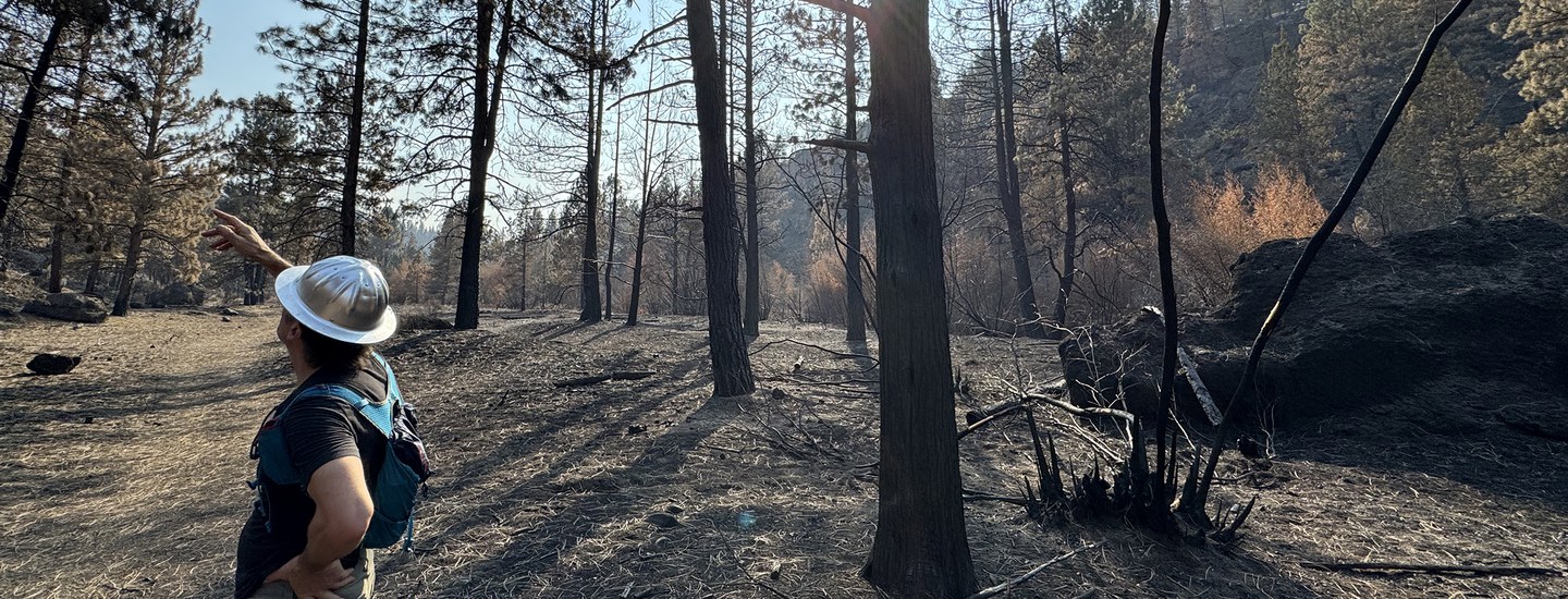 - Forestry assessments: Staff have been working with forestry partners to assess and decide how to handle juniper and pine forests that were burned in the Flat Fire. At Rimrock Ranch, most of the forests on the canyon rim and slopes burned hot and tree mortality appears high. At Whychus Canyon Preserve, we are seeing a more mixed-severity burn, with some pockets of trees surviving and others not. We are working on plans for where we’ll replant ponderosa pine seedlings, where to remove some of the burned material and where to leave it standing, where to seed, and where to just leave it alone and let nature take its time and its course. We also are thinking into the future and determining where changing climatic conditions may ultimately lead to a shift in plant communities.