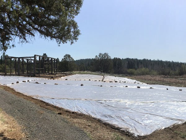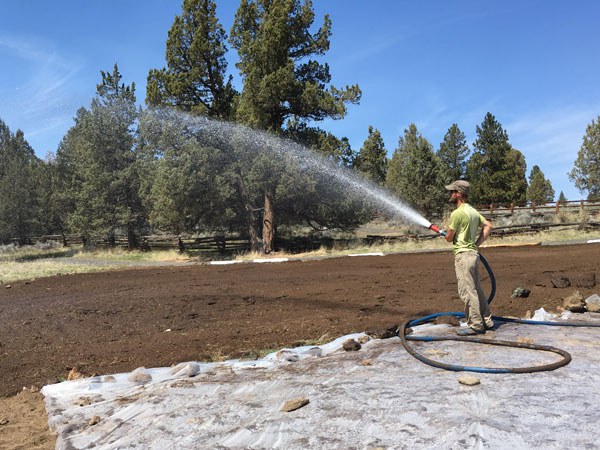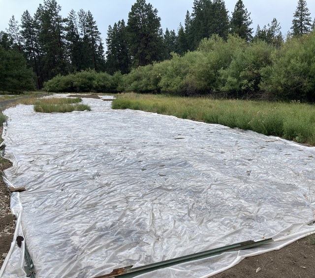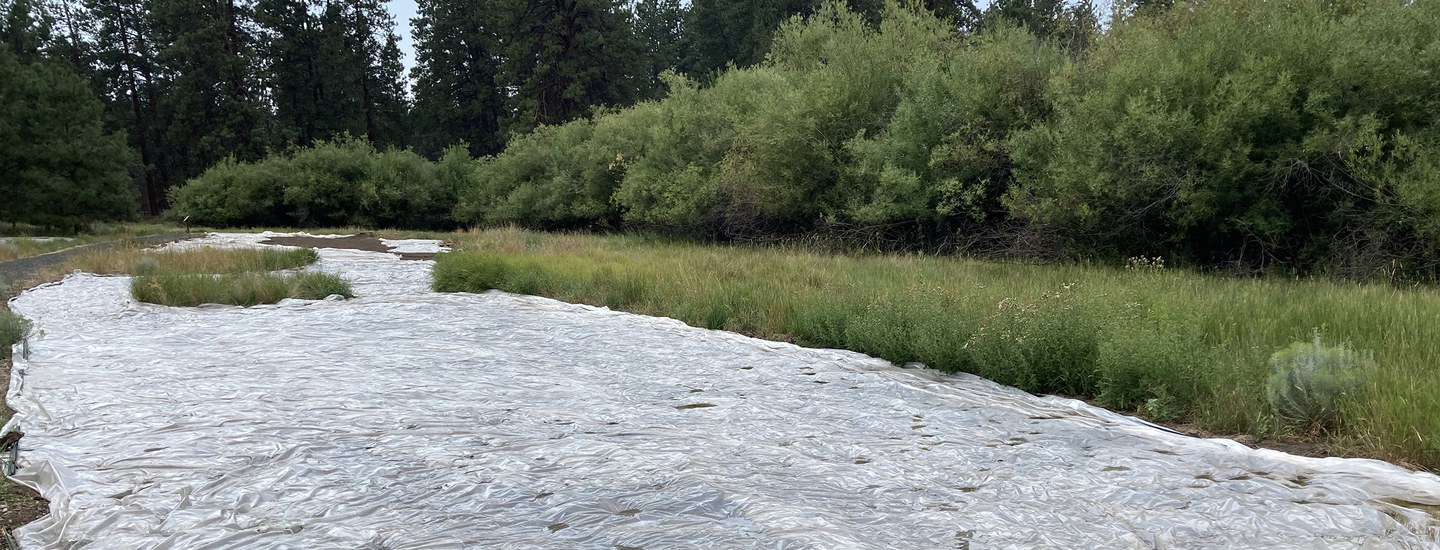 The Deschutes Land Trust is working to restore native plant communities in the Hindman Springs portion of Camp Polk Meadow Preserve. The first step to restoring native plants is soil solarization! Soil solarization is the process of using the sun's powerful energy to bake the soil under a layer of plastic to kill a pest or weed. In this case, the Land Trust is working to kill weeds and weed seeds that have been in the soil for 150 years!
