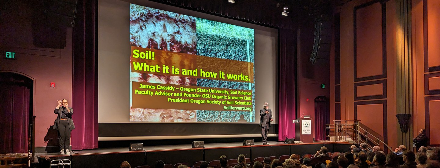James Cassidy has been an Instructor of Soil Science at Oregon State University for over 20 years. The introductory class now has over 100 students each term and is very popular. James is also the faculty advisor for the wildly popular OSU Organic Growers Club—OSU's student farm. Coming from a non-traditional background (in the music industry for over 40+ years), he is passionate about soil and is popular with students because of his dynamic speaking style. The student farm project has over 300 student volunteers on its list-serve and continues to grow. The farm cultivates over 50 different fruit and vegetable crops and is in its 24th season.