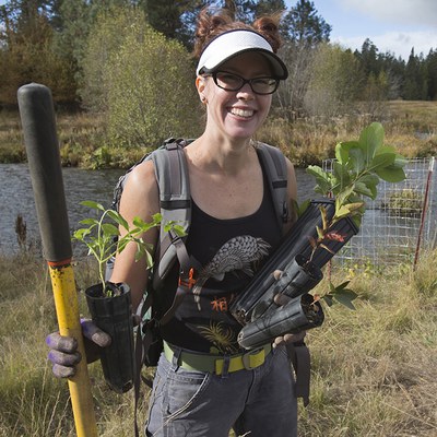 Jen Zalewski (pronouns: she/her/hers) is the Deschutes Land Trust's Stewardship Manager. She is responsible for assisting with conservation and restoration at Land Trust protected lands. She lives and works in Bend. Jen has a B.S. in conservation biology and an M.S. in wildlife biology from Humboldt State University where her Master's thesis focused on river otter ecology. Prior to joining the Land Trust as a staff member, Jen led mountain bike and birding tours for our Walks + Hikes Program. In her spare time, Jen enjoys crafting, skiing, biking, and getting out on the water with her family. (Photo by Jay Mather).