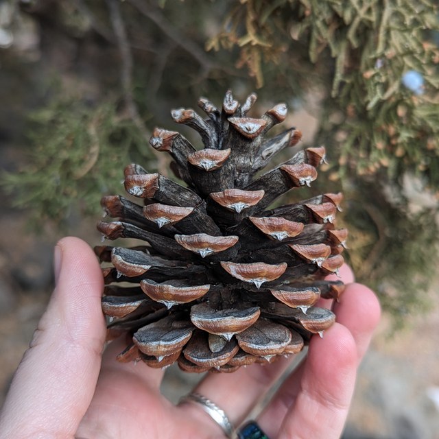 1. First, gather your pine cones. I find that ponderosa pine cones yield the best results but any medium to large pine cone will do.