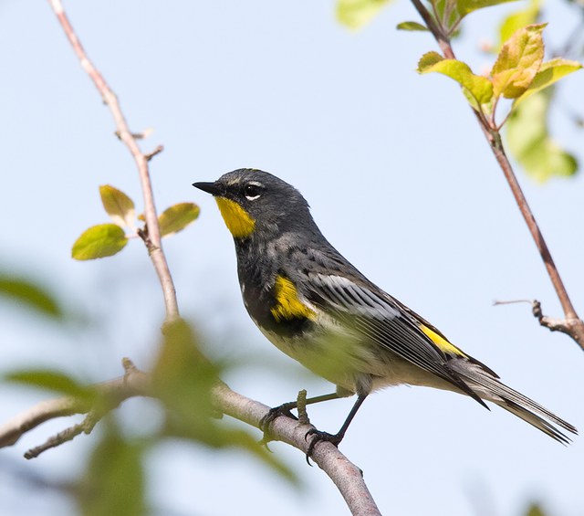 Most warbler species eat insects, but these brightly colored warblers are able to digest wax-coated berries. This adaptation allows them to winter further north than other species. Look for Yellow rumped warblers on the end of tree branches in conifer forests.