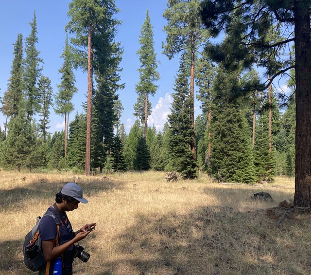 Seven weeks in, though, I had an experience that put my work behind a laptop screen to shame. I joined Peter Cooper, from the stewardship team, on a monitoring visit at Metolius Preserve. I had tagged along on the stewardship team’s visits to different Land Trust-managed properties before, but this was the first time I would be setting foot on one of the Preserves for which I had been mapping carbon and canopy data.