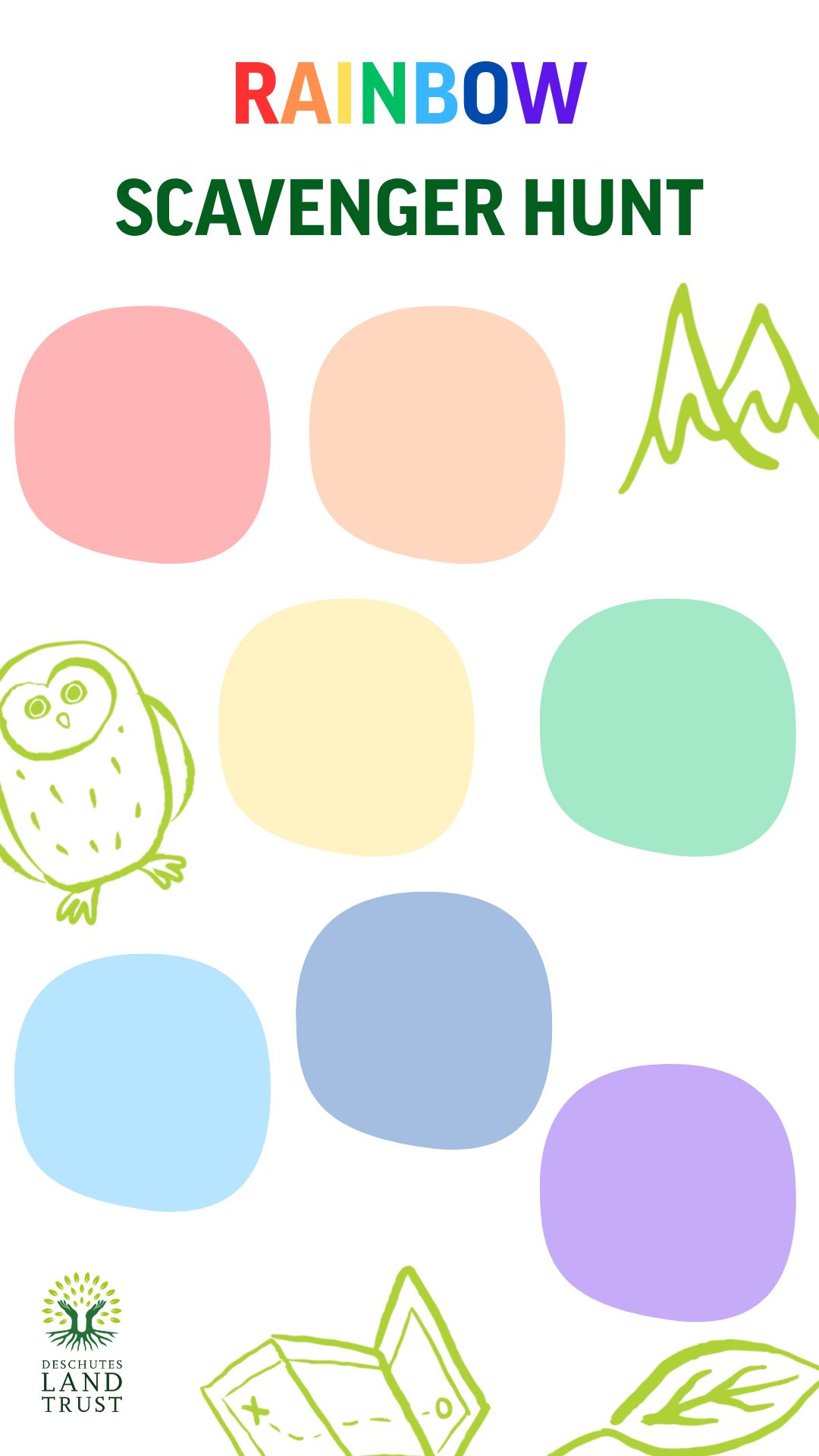 June in Central Oregon is a pretty magical time of year. Temperatures have heated up (but not too much.. at least typically) and our outdoor spaces are exploding with lots of color! Take advantage of this time of year by heading outside with the kids for a rainbow scavenger hunt.